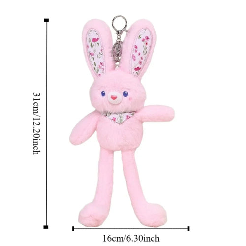 Floral Plush Rabbit Keychain - Interactive Long-Legged Bunny Pendant | 3 Options