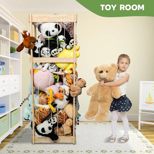 Large Wooden Stuffed Animal Storage Organizer – Plush Toy Zoo for Kids' Room or Nursery